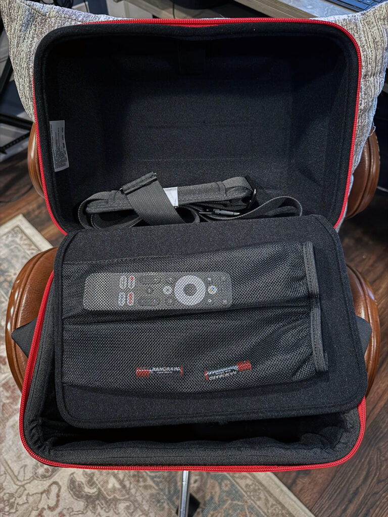 The Nebula Travel Case for Cosmos Laser Series Mars 3 offers durable, padded protection and thoughtful storage for the projector and accessories with options for hand-strap or shoulder carry and even water resistance. I keep the projector stored in the case to keep dust from collecting on the lens or in the unit itself.