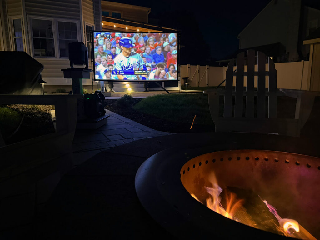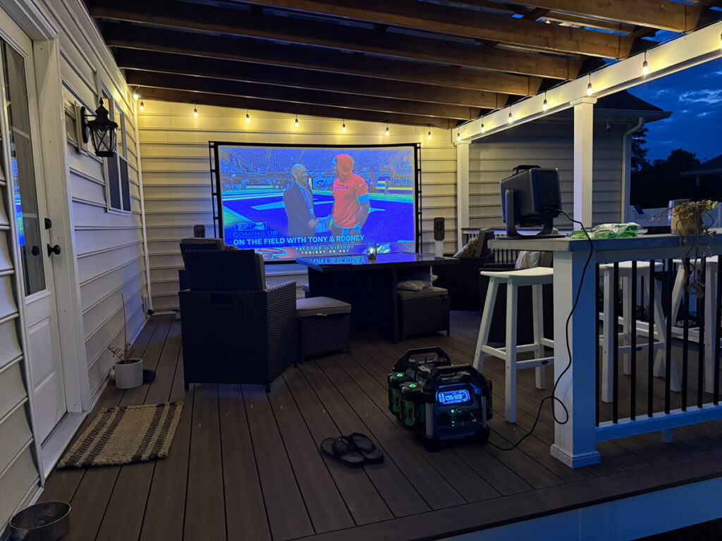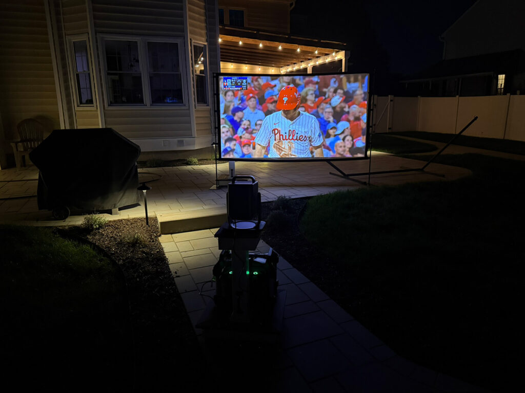 As you might have noticed in some of my photos, I am using the EGO POWER+ Portable Power Station to power the projector. What I like about it is there are no cords to trip over, especially when using the unit in my backyard. It is really nice not to have to run long extension cords and then worry about someone catching it on their foot and pulling the projector over.